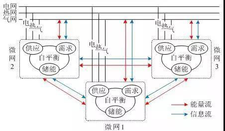 3)集中與分布式相協(xié)調(diào)。傳統(tǒng)能源系統(tǒng)和主體間是自上而下集中式?jīng)Q策的資源配置模式。自平衡體首先通過“能源就近利用”實(shí)現(xiàn)分散化自我平衡,然后通過“能源自遠(yuǎn)方來”實(shí)現(xiàn)不平衡能量交換。能源系統(tǒng)的結(jié)構(gòu)將轉(zhuǎn)變?yōu)榇笙到y(tǒng)協(xié)調(diào)分解的集中與分布式相協(xié)調(diào)。