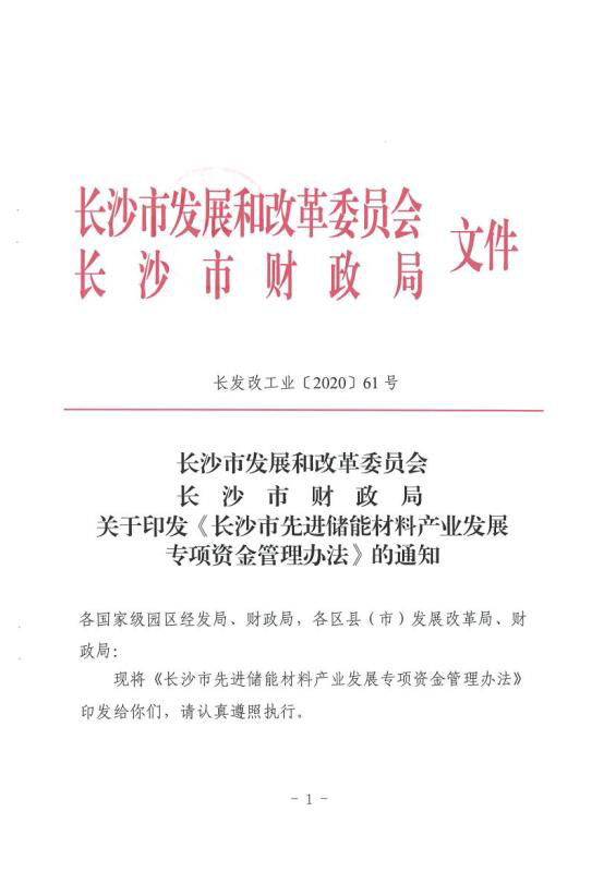 關于印發(fā)《長沙市先進儲能材料產(chǎn)業(yè)發(fā)展專項資金管理辦法》的通知