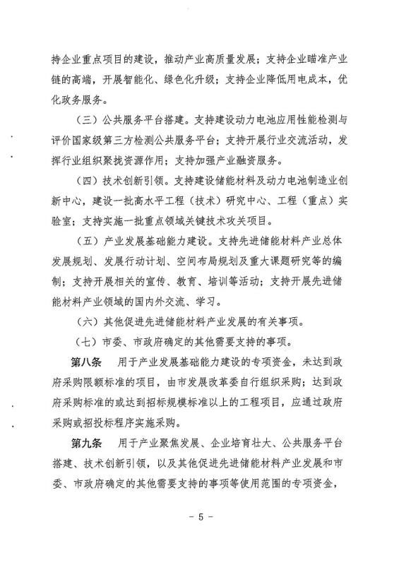 根據(jù)此前發(fā)布的《長沙市加快先進儲能材料產(chǎn)業(yè)發(fā)展三年(2020-2022年)行動方案》,2020年-2022年,每年設立市級先進儲能產(chǎn)業(yè)發(fā)展專項資金5000萬元,相關區(qū)縣、園區(qū)管委會分別按照不少于市級出資進行配套,用于支持先進儲能材料產(chǎn)業(yè)集聚重大平臺、重點企業(yè)、示范項目、行業(yè)交流活動等。