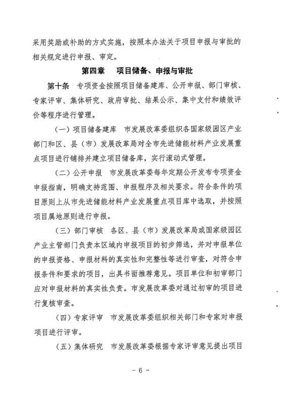 湖南長沙市發(fā)改委和財政局印發(fā)《長沙市先進儲能材料產(chǎn)業(yè)發(fā)展專項資金管理辦法》,辦法指出支持先進儲能材料產(chǎn)業(yè)總體發(fā)展規(guī)劃、發(fā)展行動計劃、空間布局計劃及重大課題研究等的編制,市發(fā)改委組織對全市先進儲能材料產(chǎn)業(yè)發(fā)展重點項目進行鋪排并建立項目儲備庫,符合條件的項目原則上從市縣級儲能此案例產(chǎn)業(yè)發(fā)展重點項目庫中選取,市發(fā)改委根據(jù)專家評審意見提出項目支持和資金安排建議。