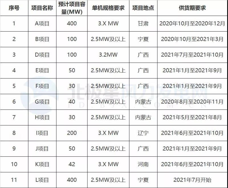 3月30日,中核匯能發(fā)布2020年風(fēng)力發(fā)電機組設(shè)備第一次框架集中采購項目國內(nèi)招標公告,本次采購為框架采購,包括11個具體項目,預(yù)計裝機總?cè)萘繛?442MW,集中采購采用公開招標的形式確定三名入圍供應(yīng)商。