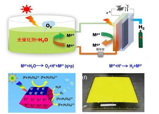 受自然界植物光合作用的啟發(fā),中科院大連化學(xué)物理所研究團(tuán)隊(duì)借鑒自然光合作用Z-機(jī)制將光系統(tǒng)II和光系統(tǒng)I在空間上分離以及光反應(yīng)和暗反應(yīng)在空間上分離的原理,將分解水反應(yīng)中的水氧化反應(yīng)與質(zhì)子還原反應(yīng)在空間上分離開來,避免了氫氣和氧氣的逆反應(yīng)、規(guī)避了產(chǎn)物氫氣和氧氣分離等問題,水氧化反應(yīng)器開放,原理上解決了大規(guī)模應(yīng)用的技術(shù)“瓶頸”。