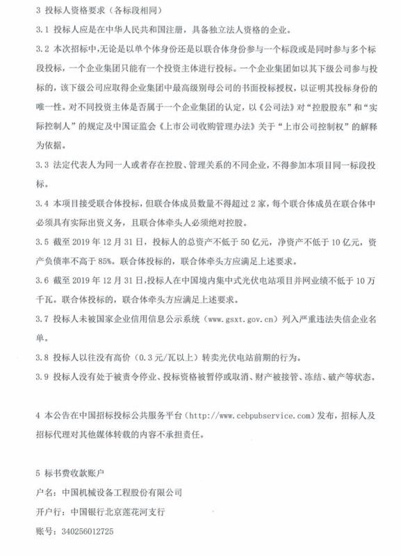 此外,競價項(xiàng)目需于2020年12月31日之前完成全容量并網(wǎng),未按期完成并網(wǎng)的取消補(bǔ)貼資格;一個投標(biāo)人可以同時參與一個或多個標(biāo)段的投標(biāo),但同一中標(biāo)人的中標(biāo)數(shù)量不得超過3個。