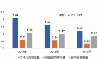 2019年,北京電力交易中心完成省間交易電量1.06萬億千瓦時,同比增長8.2%,清潔能源省間交易電量4601億千瓦時,占省間交易電量的43.3%,相應(yīng)減少標(biāo)準(zhǔn)煤燃燒14723萬噸,減少二氧化碳排放36698萬噸。其中,省間新能源消納高速增長,交易電量880億千瓦時,同比增長21.8%。