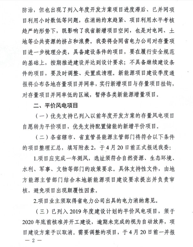 已列入2019年度建設(shè)計劃的平價風(fēng)電項目,須于2020年底前核準(zhǔn)并開工建設(shè),逾期未完成的視為自動放棄,項目建設(shè)方案予以取消。