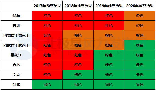 內(nèi)蒙古解除紅色預(yù)警后,不到兩年時(shí)間就接連批復(fù)了多個(gè)吉瓦級(jí)大項(xiàng)目,裝機(jī)容量突破了30GW。而這兩地的風(fēng)資源并不遜于內(nèi)蒙古,可以想象解除紅色預(yù)警,僅僅存量項(xiàng)目就可釋放巨大的空間。