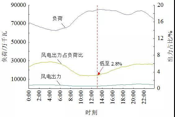 圖2 負(fù)荷創(chuàng)新高時(shí)風(fēng)電出力情況