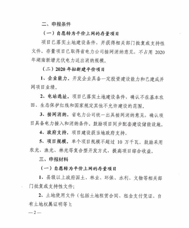《通知》要求,自愿轉(zhuǎn)為平價上網(wǎng)的存量項目要已落實土地建設(shè)條件,并獲得相關(guān)部門批復(fù)或支持性文件,已取得省電力公司接網(wǎng)消納意見,不占用2020年湖南新增光伏電力送出消納規(guī)模。