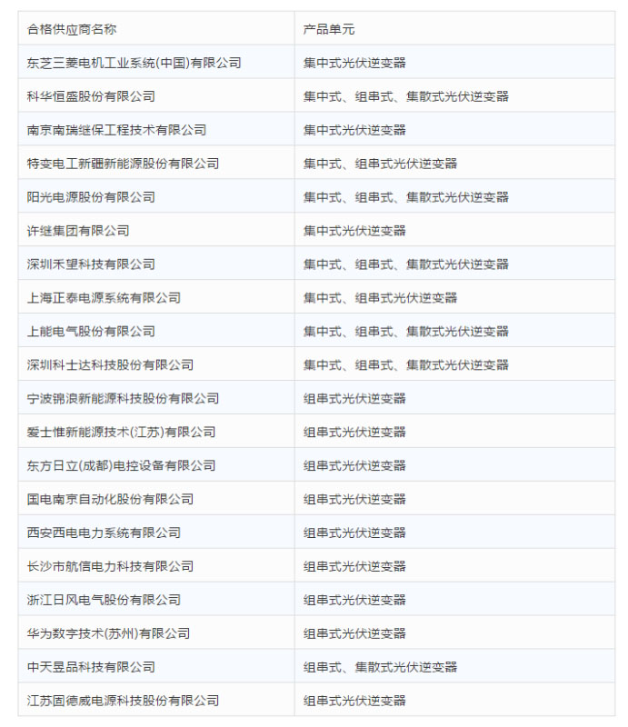 近日,國家電力投資集團有限公司(簡稱“國家電投”)發(fā)布光伏逆變器供應商資格評審結(jié)果,公布了合格光伏逆變器供應商名錄。
