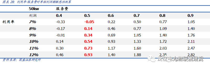 同時(shí)以50kw快充樁為例,針對(duì)利用率與服務(wù)費(fèi)做出敏感性分析,