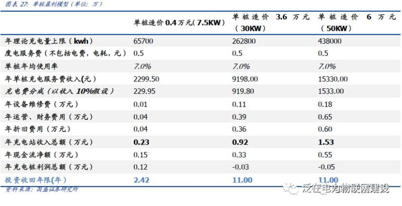 投資回報(bào)年限:7.5kw慢充/30kw快充/50kw快充分別為:2.42/11.0/11.0年。