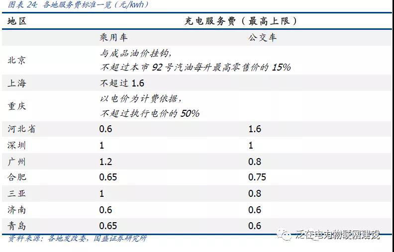 ? 充電收入包括充電服務(wù)費(fèi)+電費(fèi);充電服務(wù)費(fèi)一般由各地政府規(guī)定上限,針對(duì)公交車與乘用車不同(市場(chǎng)參與者可在上限之內(nèi)自由定價(jià))。