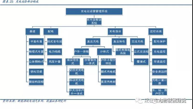 對(duì)于具備一定規(guī)模的充電站,整體投資包含四個(gè)子模塊:變電和配電系統(tǒng)、充電系統(tǒng)、充電站監(jiān)控系統(tǒng)及基建系統(tǒng);
