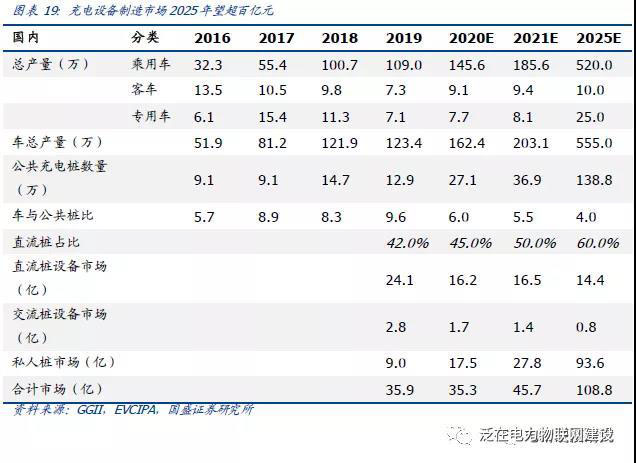 同時(shí)為簡(jiǎn)化計(jì)算,假設(shè)公共直流樁以平均50KW,約6萬(wàn)元(包含配電與建設(shè)成本),交流樁7-10KW,約5000元;私人樁7KW,約3000元。預(yù)計(jì)國(guó)內(nèi)2025年充電樁設(shè)備合計(jì)市場(chǎng)約百億元。