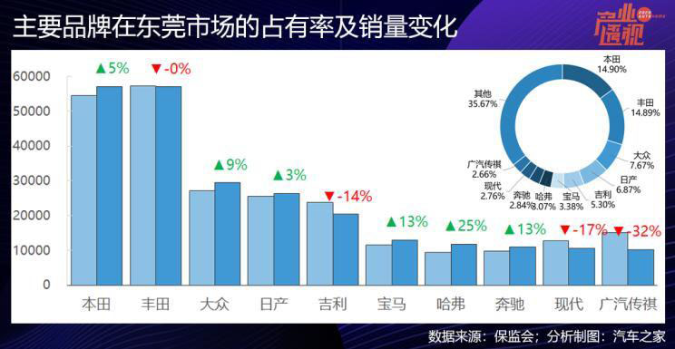 武漢的千人汽車保有量達(dá)到326輛,是國內(nèi)較高的城市。2019年的新車銷量增長了4.95%,東風(fēng)系在武漢還是很有市場的,本田是當(dāng)?shù)劁N量最高的品牌,并且大幅增長了23%,東風(fēng)風(fēng)神更是大增62%,主要受新能源車型東風(fēng)風(fēng)神E70的拉動,不過該車型在去年6月補(bǔ)貼退坡前出現(xiàn)了一波集中上險(xiǎn)潮,下半年走弱。豐田也強(qiáng)勢增長了33%,前十大品牌中僅別克和奧迪銷量下滑。