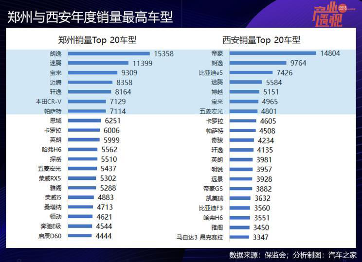 熱銷車型榜上,兩地都有更多的中國品牌車型上榜。西安銷量最高的是帝豪,五菱宏光排位也較為靠前。奔馳E級進(jìn)入鄭州市場Top 20車型榜,不過比較靠后,而西安市場的Top 20車型榜單上沒有豪華品牌車型。整體上,這兩個(gè)中部城市的汽車消費(fèi)還處于上升階段,且有較好的中國品牌市場基礎(chǔ),中國品牌的高端車型在這里的上市空間或存。