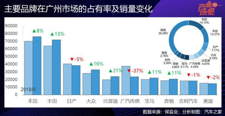廣州和深圳是珠三角的核心城市,汽車消費(fèi)相似度高,日系車在這兩個(gè)城市都占主流,豐田和本田合計(jì)占到廣州新車銷量的1/3,在深圳的合計(jì)占比也接近20%。不同的是,寶馬和奔馳在深圳的市場份額更高,都在6%以上,而廣州只有4%多一點(diǎn)。