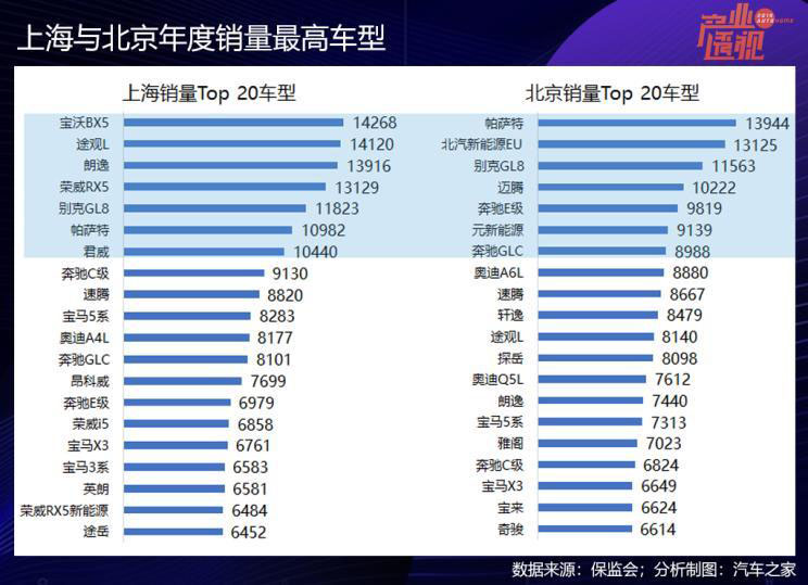 兩地的熱銷車型也差別明顯,比如,上海銷量最高的豪華品牌車型是中型轎車奔馳C級,而北京的是中大型轎車奔馳E級;奧迪A4L在上海銷量排第11位,而卻不在北京的Top 20車型榜上,反倒是中大型轎車奧迪A6L躋身于北京新車銷量榜第8位。比較詭異的是寶沃,寶沃工廠地處北京,卻在上海市場摘得頭牌。怎么做到的?以裙帶關(guān)系和一貫打法看,神州出行內(nèi)部采購消納恐怕不在少數(shù)。