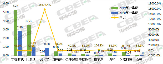 圖3:2020年一季度國內(nèi)動力電池裝機(jī)量TOP10的企業(yè)分析