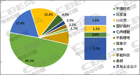圖2:2020年一季度國內(nèi)動力電池裝機(jī)量TOP10的企業(yè)占比