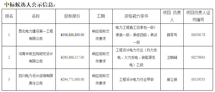 第三名:四川電力設計咨詢有限責任公司,折合單價2.95元/W。