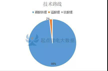 從電池技術(shù)路線路線來看,磷酸鐵鋰電池裝機(jī)量為892MWh、占比98%,錳酸鋰電池裝機(jī)量為18.3MWh、占比2%,鈦酸鋰電池裝機(jī)量為0.28MWh。