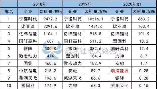 從電池裝機(jī)量來看,排名前十企業(yè)的格局已基本穩(wěn)定,在今年一季度,瑞浦能源客車電池裝機(jī)量進(jìn)入前十行列。