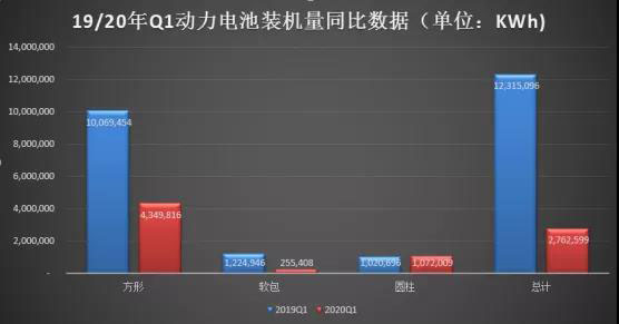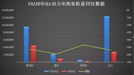 一方面,受新冠肺炎疫情影響,2020年Q1國(guó)內(nèi)新能源汽車(chē)產(chǎn)銷(xiāo)量雙雙大幅下滑,導(dǎo)致動(dòng)力電池裝機(jī)量出現(xiàn)腰斬,同比下降超過(guò)50%。