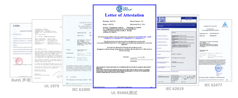 除了UL 9540A,寧德時(shí)代還通過(guò)了GB/T 36276,IEC 62619,62477-1 LVD,61000-6-2/-4 EMC和UL 1973等一系列國(guó)內(nèi)外權(quán)威認(rèn)證。我們積極參與國(guó)內(nèi)外高標(biāo)準(zhǔn)權(quán)威測(cè)試,在驗(yàn)證儲(chǔ)能產(chǎn)品安全的同時(shí),保障儲(chǔ)能項(xiàng)目順利落地與安全運(yùn)行,促進(jìn)儲(chǔ)能行業(yè)健康發(fā)展。