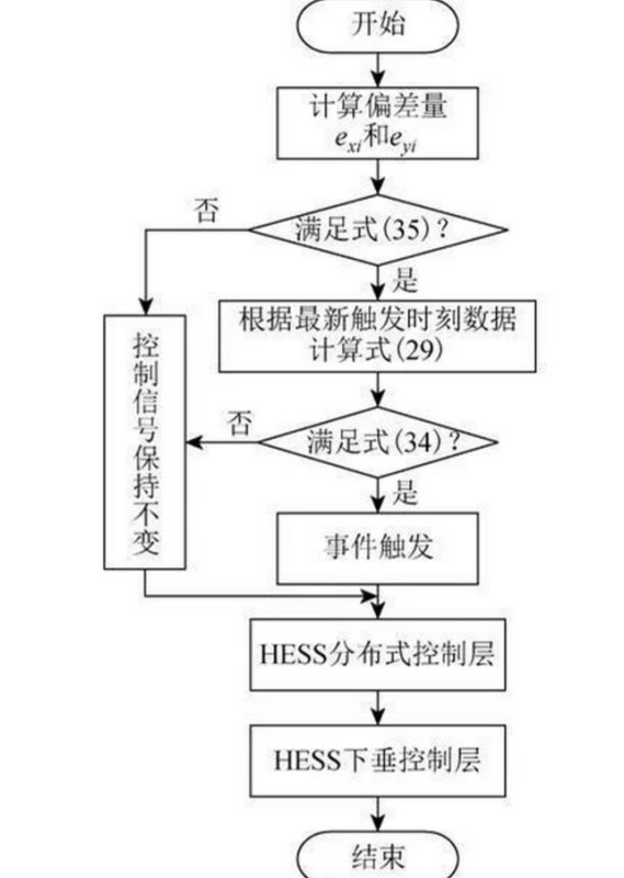 不同于以上研究,華北電力大學(xué)電氣與電子工程學(xué)院的研究人員以HESS作為一個(gè)獨(dú)立系統(tǒng),提出一種基于事件觸發(fā)機(jī)制的HESS分層協(xié)調(diào)控制方法。底層控制采用虛擬電阻下垂控制,利用低通濾波器實(shí)現(xiàn)對(duì)蓄電池和超級(jí)電容的功率分配,并提出基于蓄電池SOC的虛擬電阻調(diào)節(jié)和基于超級(jí)電容SOC的電流補(bǔ)償策略,實(shí)現(xiàn)HESS協(xié)調(diào)安全運(yùn)行。分布式控制層為下垂控制層提供電壓補(bǔ)償項(xiàng),以同時(shí)實(shí)現(xiàn)對(duì)電壓調(diào)節(jié)和電流均分的控制目標(biāo)。