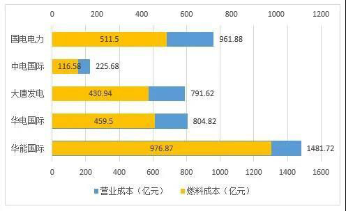 2019年五大發(fā)電央企上市公司燃料成本情況