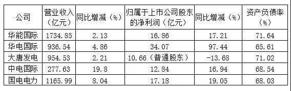 營(yíng)業(yè)收入均有增長(zhǎng);凈利潤(rùn)方面,華電國(guó)際增幅最大,為97.44%,大唐發(fā)電同比減少13.68%。