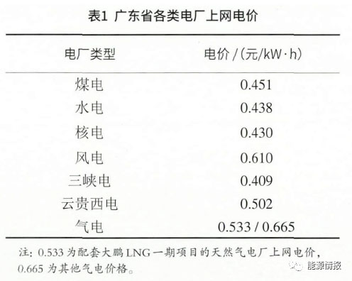 (5)從目前廣東省各類典型電廠上網(wǎng)電價來看,廣東省天然氣價格在全國處于較高水平,且相對比其他發(fā)電類型要高(如表1),天然氣燃料成本在發(fā)電成本中占比超過70%,燃料成本價格成為影響天然氣電廠經(jīng)營最重要因素。
