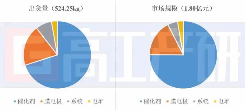 2019年中國氫燃料電池催化劑出貨量和市場規(guī)模構成