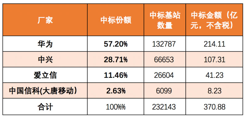 自此,三大運營商2020年5G基站集采大單都已正式落地。