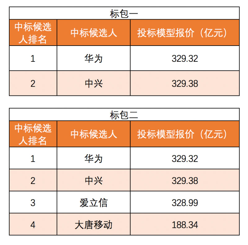 從結(jié)果來看:標(biāo)包一的第一、第二中標(biāo)候選人分別為華為、中興;標(biāo)包二的第一、第二、第三、第四中標(biāo)候選人分別為華為、中興、愛立信、大唐移動。此前在中國移動5G主設(shè)備集采中失利的諾基亞,在本次電聯(lián)集采中再次落空。