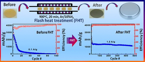 在這篇題為《工程硅納米結(jié)構(gòu)電極:下一代鋰離子電池的可擴(kuò)展再加工生產(chǎn)》(Engineered Si Electrode Nanoarchitecture: A Scalable Postfabrication Treatment for the Production of Next-Generation Li-Ion Batteries)的文章中,研究人員稱,引入這項具有創(chuàng)新性,且性價比高的快速熱處理技術(shù),對硅陽極進(jìn)行再處理,能夠提高鋰電池的性能和循環(huán)壽命。