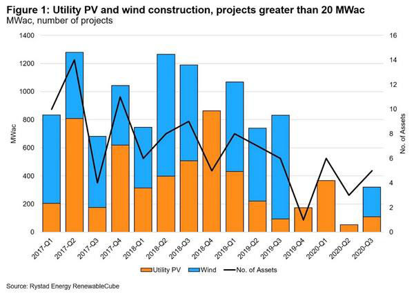 目前,530 MW的光伏發(fā)電和210 MW的風(fēng)能發(fā)電已經(jīng)暫停,這些項(xiàng)目有些或者已經(jīng)開始建設(shè),或計(jì)劃在2020年開始建設(shè)。新冠肺炎可能會(huì)導(dǎo)致項(xiàng)目延遲或取消。剩余的項(xiàng)目將面臨財(cái)務(wù)風(fēng)險(xiǎn)。