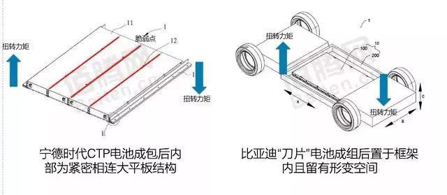 通過結構分析,我們可以看到,寧德時代CTP技術因為考慮到體積封裝效率的最大化,大模組之間的連接可靠性更容易受到對角線反復切應力的影響,對于高壓線束和冷卻系統(tǒng)的連接挑戰(zhàn)比較大,長期使用的可靠性有待驗證。而比亞迪"刀片"電池實際上仍然保留了模組封裝和電池包封裝的整體構型,同時從專利圖可見,其電池包封裝將有可能根據(jù)車型需要,預留形變空間,避免超薄大電芯直接受力。從結構耐久性上看,比亞迪刀片電池封裝更容易做出可靠的產(chǎn)品。