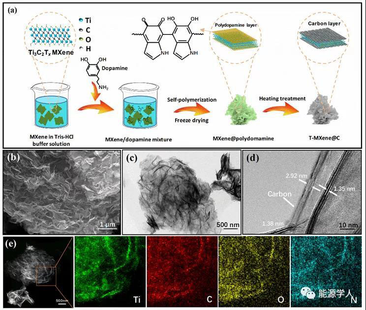 1. T-MXene@C的合成示意圖及形貌表征