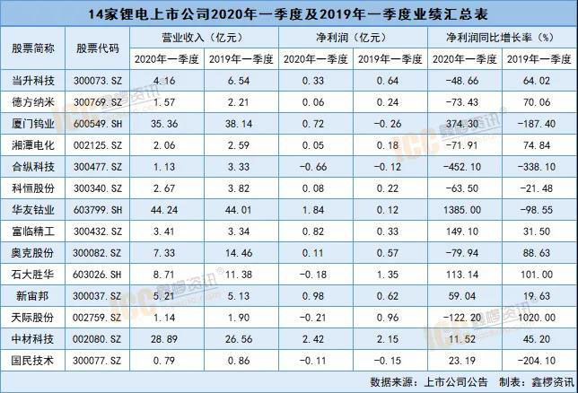 下面將14家鋰電材料上市企業(yè)第一季度詳細表如下: