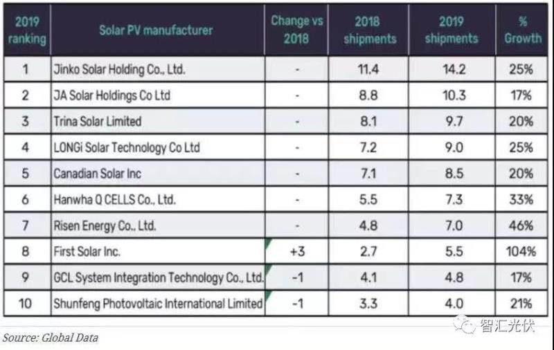 1、2019年中國光伏組件出貨量排名