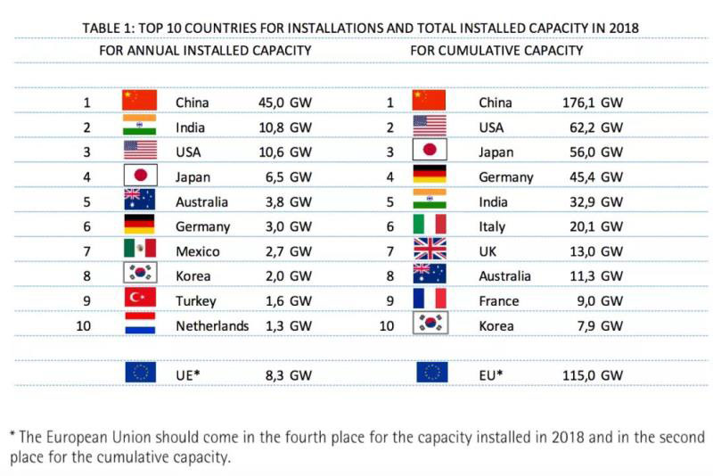 2018年全球裝機的統(tǒng)計數(shù)據(jù)