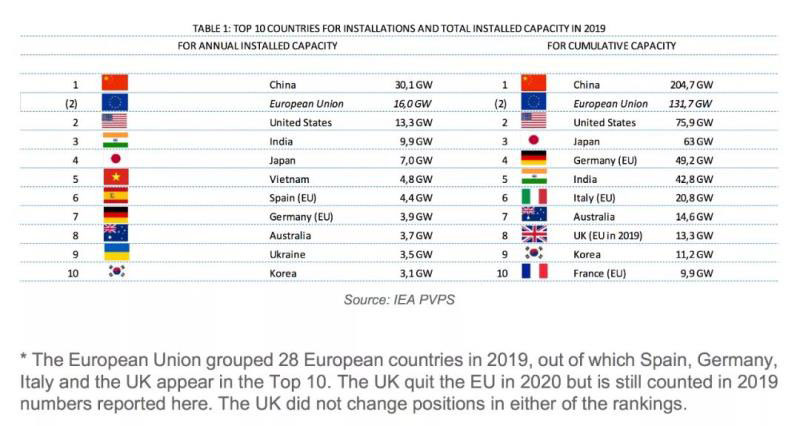 中國以30.1GW的規(guī)模占據(jù)世界第一。