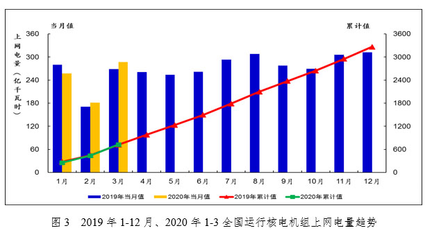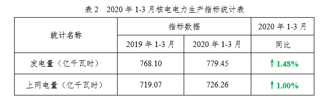 表1 2020年1-3月47臺(tái)運(yùn)行核電機(jī)組電力生產(chǎn)情況統(tǒng)計(jì)表[8]