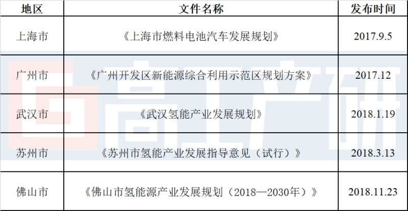 部分城市氫能和燃料電池產(chǎn)業(yè)發(fā)展規(guī)劃發(fā)布時間