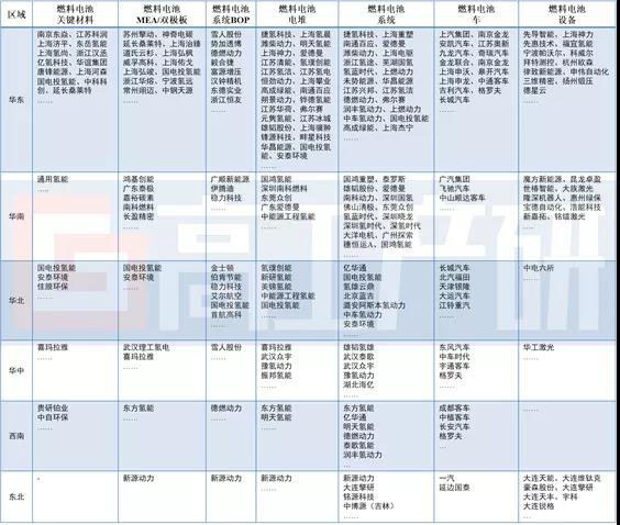 主要氫燃料電池產(chǎn)業(yè)鏈企業(yè)分布