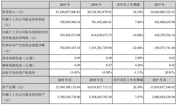 中國儲能網(wǎng)訊:4月28日晚間,欣旺達(dá)發(fā)布2019年年度報告。2019年,公司實現(xiàn)營業(yè)收入252.41億元,同比增長24.1%;歸屬于上市公司股東的凈利潤7.51億元,同比增長7.06%。