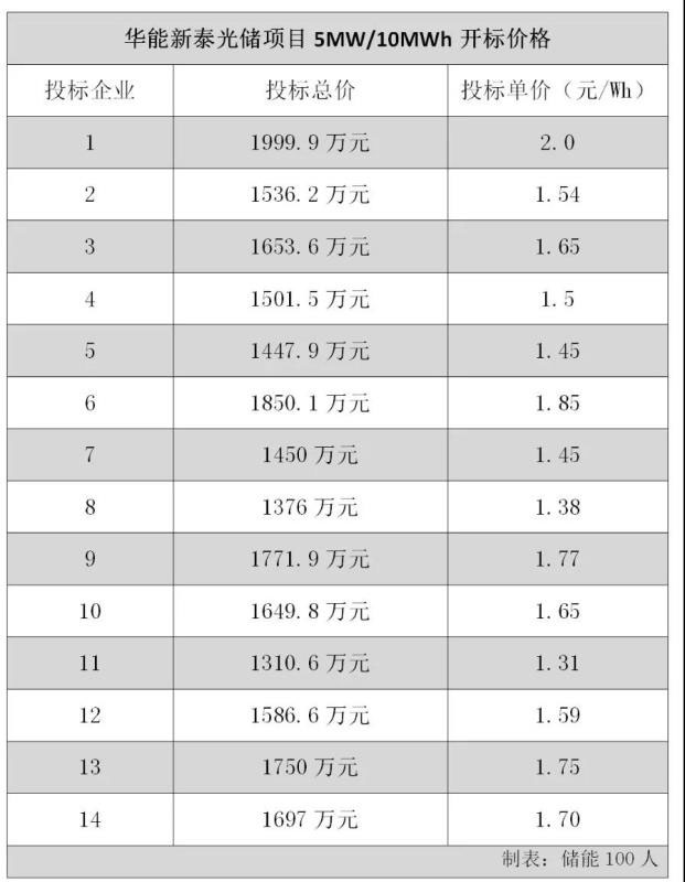 4月27日,華能新泰朝輝光伏配置儲能系統(tǒng)5MW/10MWh中標結果公示,平高集團有限公司以總價1536.17 萬元、單價1.54元/Wh中標。