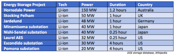 表:全球最大的鋰離子電池儲能項目-額定容量